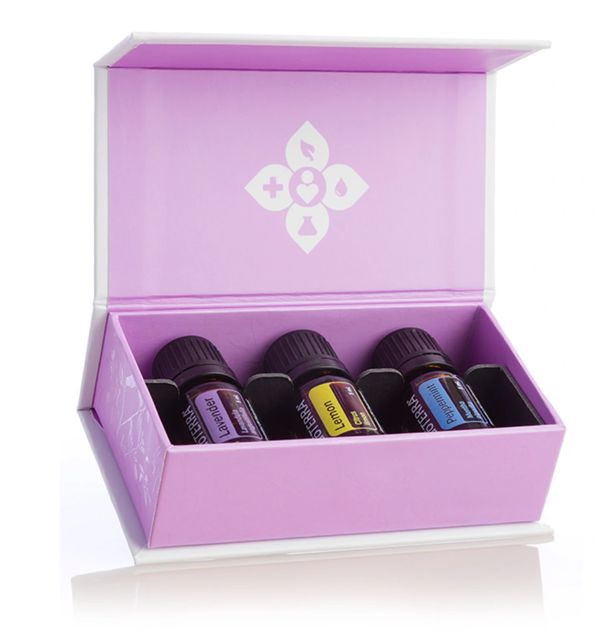 Comes with a 5mL bottle each of certified therapeutic grade essential oils Lavender, Lemon, and Peppermint. Includes shipping and taxes.